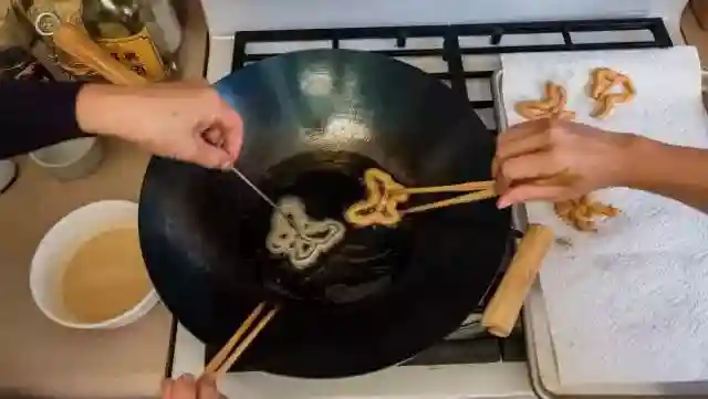 林奶奶和女儿一起炸蝴蝶酥