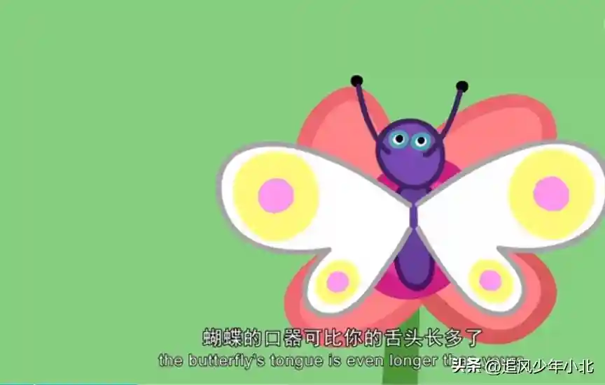 GrandpaPig:Oh,yes,thebutterfly'stongueisevenlongerthanyours.哦,是的。蝴蝶的口器可比你的舌头长多了。