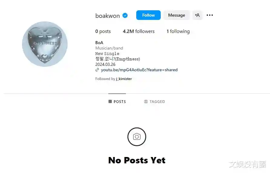 在“官宣退休”风波后,BoA权宝儿清空IG账号