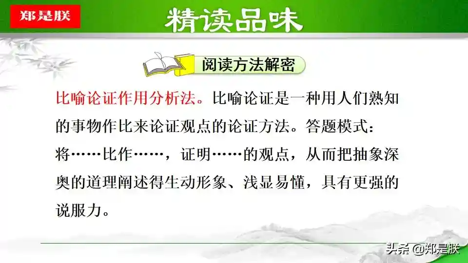文章运用“类比手法”引出要阐述的观点,讲述了“教学相长”的道理。即教人和学习是相互促进,相辅相成的。告诉我们实践出真知的道理。