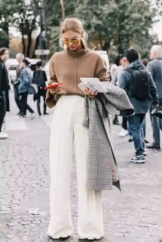 阔腿裤loosepants:一款拥有宽阔裤脚的裤子,从大腿处至裤脚上下一样的宽度。