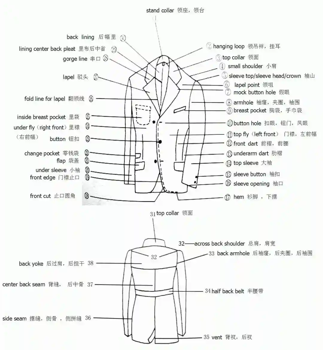 服装部位名称图解——外套