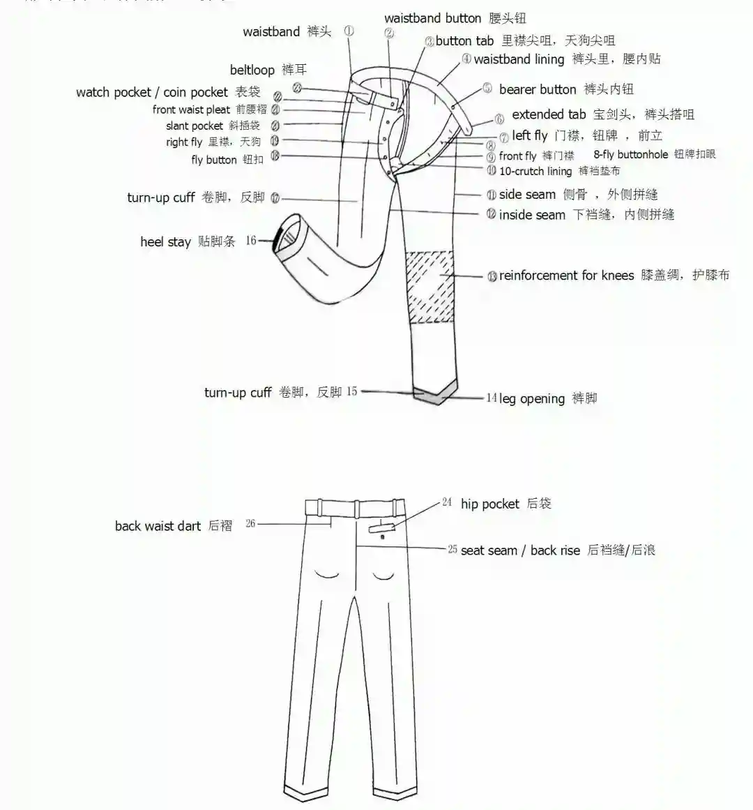服装部位名称图解——裤子