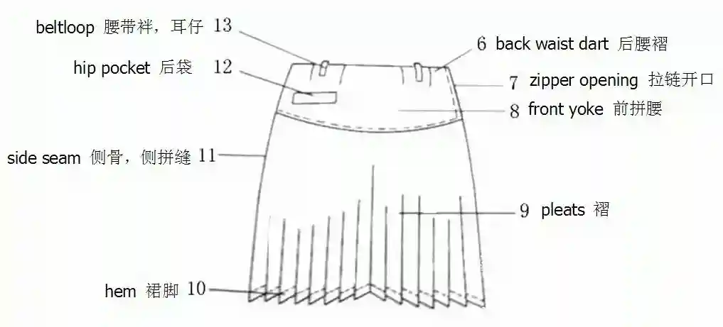 服装部位名称图解——裙子