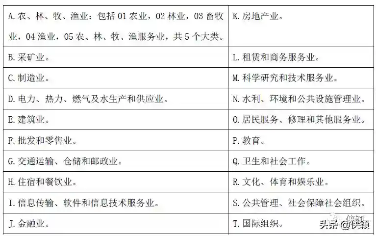 (2)国民经济行业分类我国对国民经济活动采用四级行业分类,现将国民经济行业分类中的各个门类和其中的大类别示如下