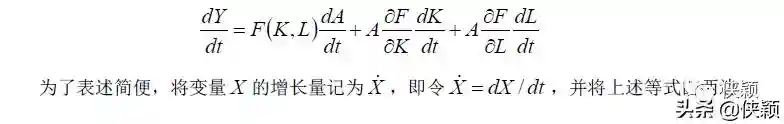 为了分析各个不同的因素对国民经济增长率的影响,我们可对生产函数YAFK,L的等式两边分别对时间求导,得: